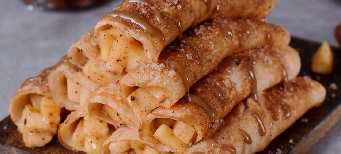 Эти блины с яблоками, корицей и карамельным соусом — веганские, без глютена, и их очень просто приготовить, например, к завтраку или на десерт в любое время дня. Чтобы испечь яблочные блины, используйте рисовую муку и овсяные хлопья без глютена. Вы также можете взять обычный овес и белую муку вместо риса, если спокойно переносите глютен. Чтобы приготовить десерт с овсянкой, просто предварительно измельчите овсяные хлопья в кофемолке или блендере. В качестве начинки — сладкие яблоки, корица, кокосовый сахар, лимонный сок и немного кукурузного крахмала. При желании, вы можете добавить изюм, ром или экстракт ванили. Просто нарежьте фрукты, выложите все ингредиенты на сковороду и обжарьте в течение нескольких минут. Карамельный соус состоит из 3 ингредиентов — кокосового сахара (можно использовать и обычный, коричневый), воды и любого орехового масла, на ваш выбор. Ингредиенты: Сухие: 90 г овсяных хлопьев, смешанных с мукой;