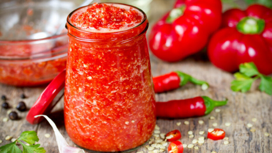 Заготовки на зиму. Огонек из помидор и чеснока с хреном рецепт.