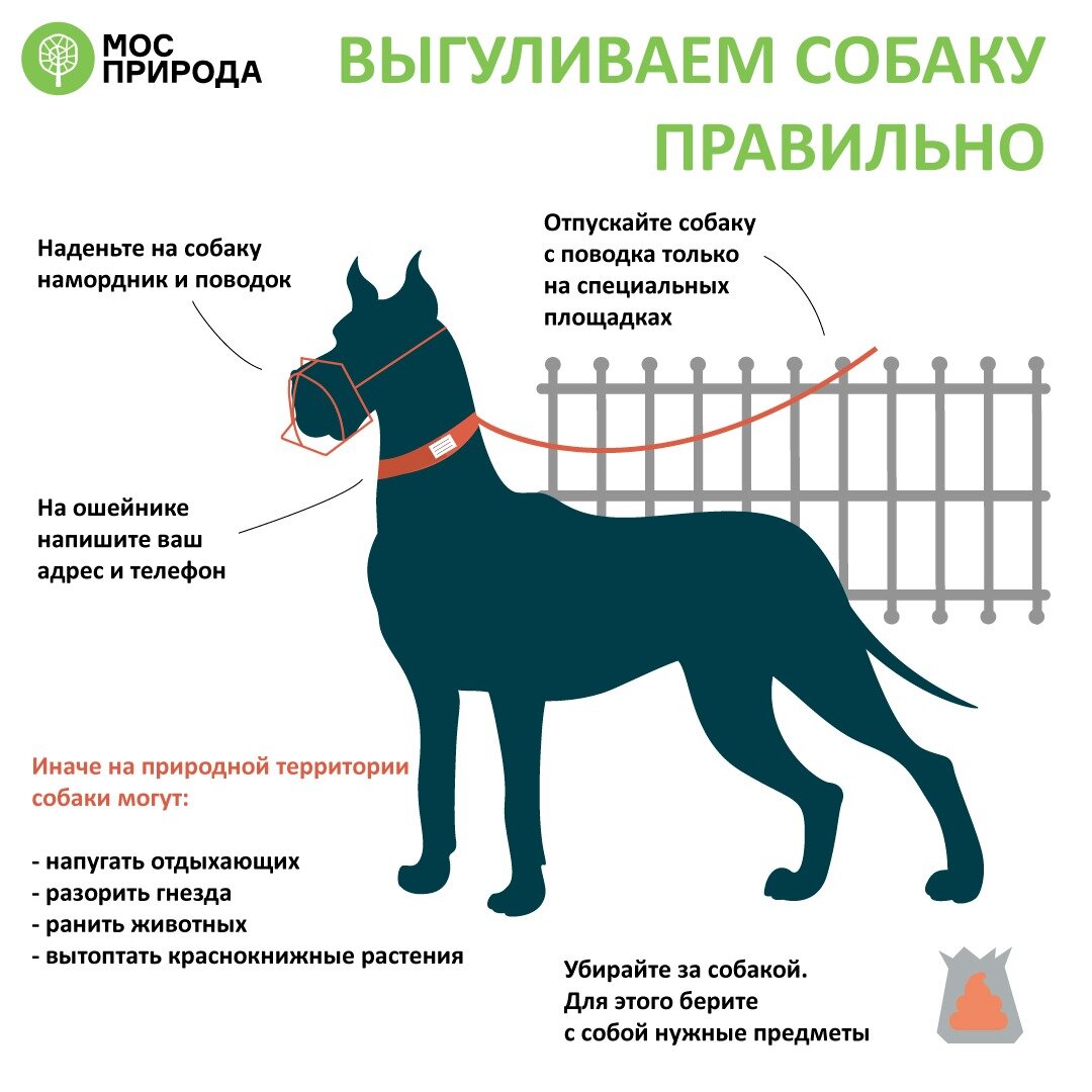 В людных местах парков рекомендуется надевать на животного намордник и поводок. Опытные собаководы рекомендуют на ошейнике написать адрес и телефон хозяина, ведь если собака случайно вырвется и убежит, найти ее в лесу будет непросто.