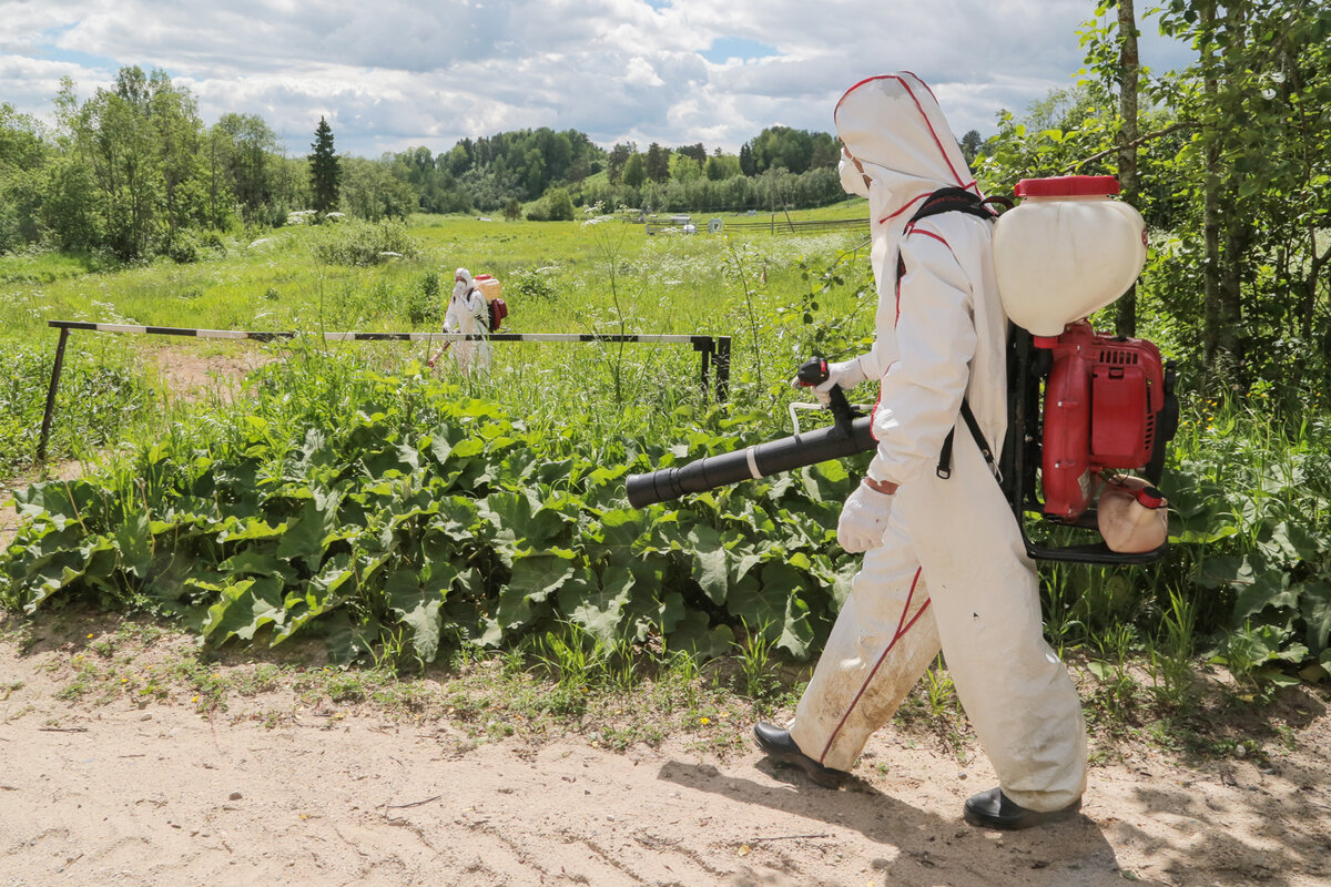 Как проводится обработка участков и территорий от сорняков? Процедура, направленная на уничтожение нежелательной растительности, заключается в распылении химических средств на участках, где поселились сорняки. В большинстве случаев растения-вредители мешают росту полезных культур. Они обладают способностью прорастать через различные стройматериалы, разрушать фундаменты строений. В подобных случаях гербицидная обработка участков становится необходимостью. Специалист проводит обработку гербицидами методом орошения (бензиновыми опрыскивателями или аккумуляторными опрыскивателями) или методом инъекций (если нужно избавиться от кустов, стволов). Срок погибания сорных растений от 7 дней до 21 дня. Этот способ борьбы с растениями-вредителями применим: Как это работает? Распыленный яд, действуя на клеточном уровне, доходит до корневой системы и вызывает её гибель. Если речь идет о траве, то уже через неделю она пожелтеет и высохнет, и участок будет свободен. Если же присутствуют кустарники