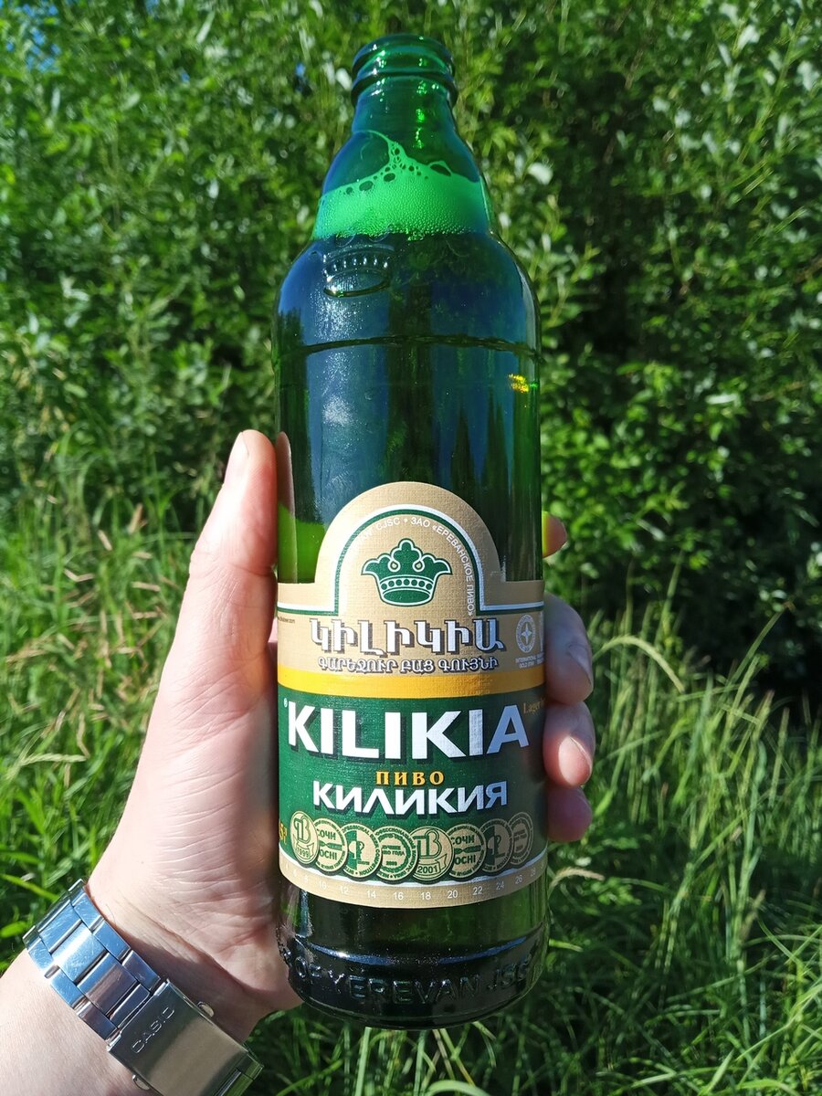 Лет 10 назад увидел в продаже это армянское пиво и долго колебался - стоит ли его купить на пробу. Понятное дело, что коньяк в Армении делают отличный, а вот насчёт пенного у меня были большие сомнения. В итоге взял бутылочку и оценил пиво вполне положительно. Так что, увидев на днях Киликию в магазине, снова купил пару бутылок, чтобы освежить воспоминания. Пиво привлекает к себе внимание бутылкой необычной формы и довольно яркой этикеткой. Т.е. не заметить его на магазинной полке весьма затруднительно. На сайте производителя об этом пиве пишут следующее: Киликия — светлое пиво, имеет светло-золотистый цвет, полный вкус солода и хмеля. Отличается сильно выраженной хмелевой горечью и приятным ароматом хмеля. Приготовлено по классической технологии из лучших сортов светлого солода и хмеля. Производится с 1999г. На международных и республиканских смотрах удостоено 13 золотых, 1 серебряной и 1 бронзовой медалью. Ну-с, оценим. ТТХ: Алкоголь - 4.8% Плотность - 12.5% Горечь -??? Хмель -??