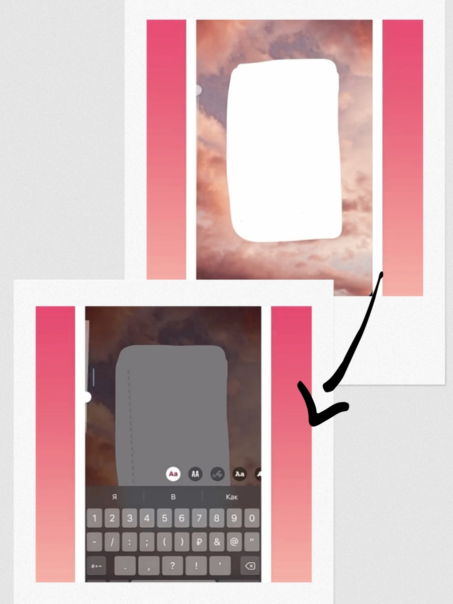 Наткнулась на эти идеи в инстаграме и решила то же с Вами поделиться. Ведь чтобы создать интересную сторис не обязательно иметь кучу приложений, так как всё, что нам понадобится, есть в самом инстаграме. 1. Планер задач/ целей на день. Как же создать листик из ежедневника, дополнив его оживленной маркой и галочкой. 1) Выбираем фон для нашего планера. Здесь это облака. Затем рисуем белый прямоугольник, на котором расположим множество обычных точек, напоминающих дырочки. 2) После этого создадим строчки с помощью простого пробела. И дополнительные все это простым скотчем "pink tape". 3) После чего разнообразим наш листик штампами и марками "pink stamp". Теперь можно добавить и список дел. 4) Ну и на последок добавим ту заветную галочку "check". Все, Ваш планер готов. 2. Фон из гифок. Здесь в качестве фона мы используем гифки. И через специальные возможности добавляем нашу фотографию. Но чтобы скрыть такой переход, нам надо создать 3D эффект с помощью простых стикеров. Н