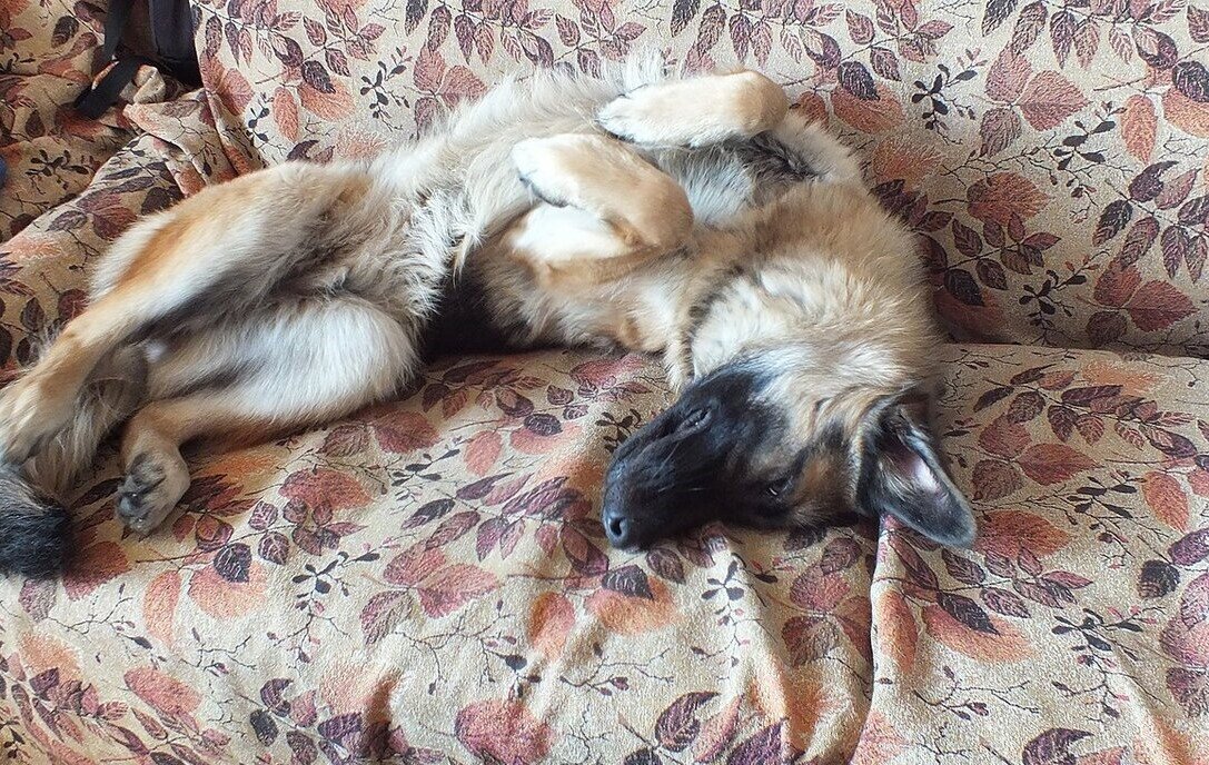 Когда наша собака Кира была маленькой, она, набегавшись, падала и спала там, где свалил сон.