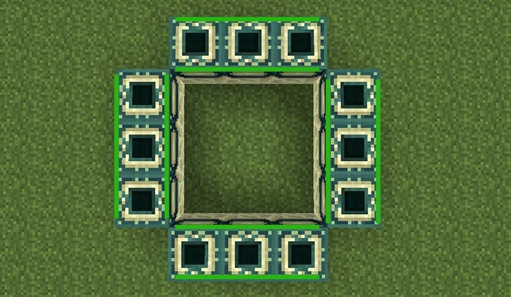 Если вы находитесь в режиме выживания, то вам нужно найти крепость портала и поставить туда 9 Очей Края. Если вы в Творческом Режиме игры то нужно поставить рамки портала вот так: