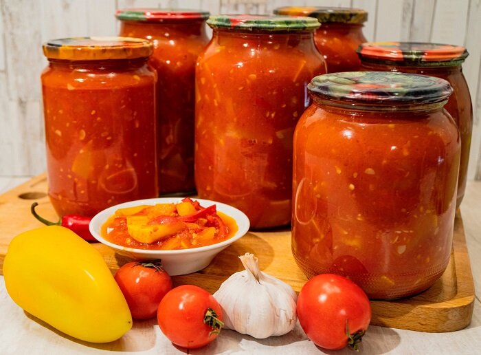 Идеальна к любым мясным блюдам и как закуска под беленькую. Рецепт проще простого, а результат восхитителен. Я каждую осень готовлю закуску по этому рецепту, который мне рассказала еще моя бабушка. У нас дома кетчуп не едят, а предпочитают именно эту закусь. Да и кетчуп в сто раз проигрывает данному рецепту. Сейчас самое время готовить эту помидорную закуску. Необходимые ингредиенты Пошаговое приготовление Все овощи нужно вымыть, перцы почистить от семян и плодоножек. А затем или прокрутить на мясорубке или измельчить посредством блендера. Последний вариант предпочтительнее. Я пользуюсь именно им. Измельченные овощи нужно перелить в кастрюлю и поставить на небольшой огонь. Сюда же добавить масло растительное, перцы (черный и красный), соль. После того, как все закипит, нужно убавить огонь и варить на слабо огне с полчаса. Нужно постоянно помешивать, в ином случае все может подгореть и получится не так вкусно, как хотелось бы. Пока томатно-перечная смесь варится, это время нужн