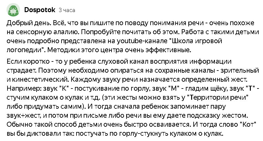 Я много рассказываю о том, как сын начал говорить. Мы, конечно, шли через лес и какие-то невменяемые преграды. У сына речь начала более менее развиваться только в 9 лет.