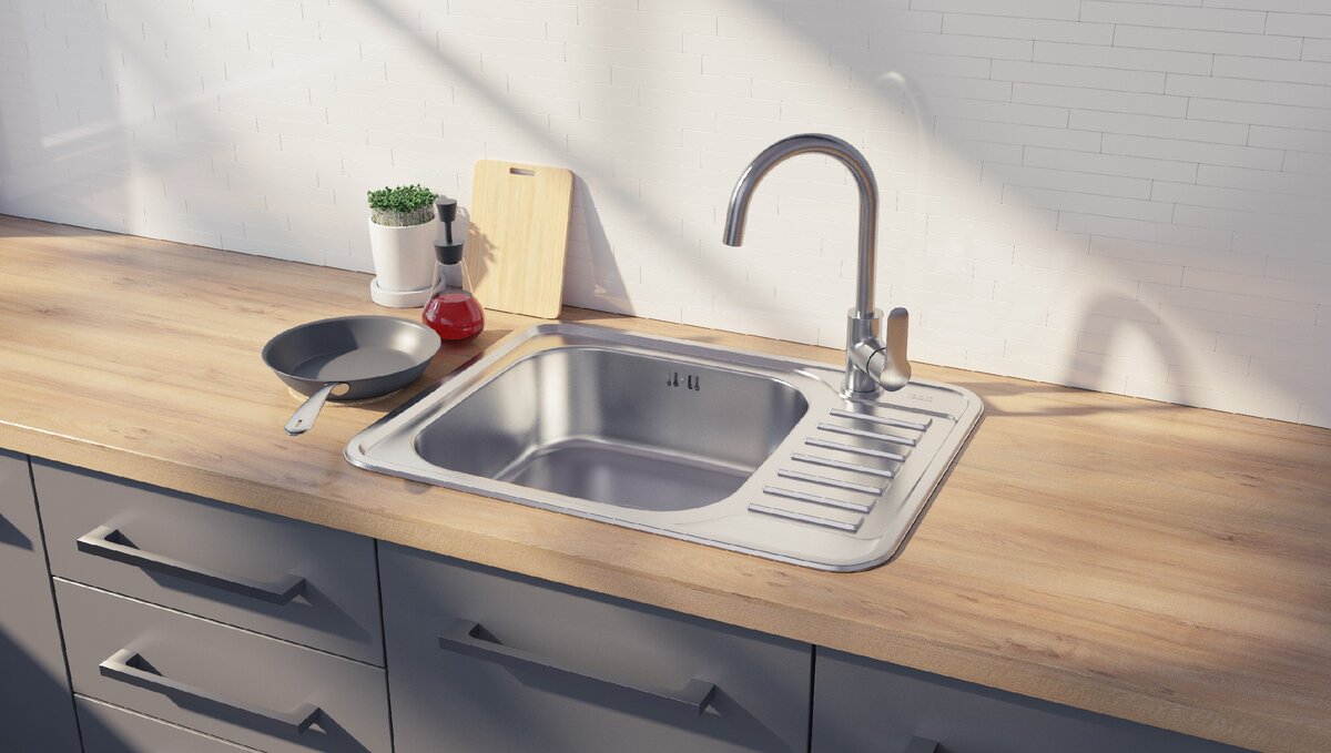 Врезные выступают над рабочей поверхностью, но монтируются в столешницу, для чего в ней заранее вырезается отверстие. Один из самых популярных и удобных в использовании вариантов. Цены на такие мойки невысокие, а установить их можно самостоятельно.