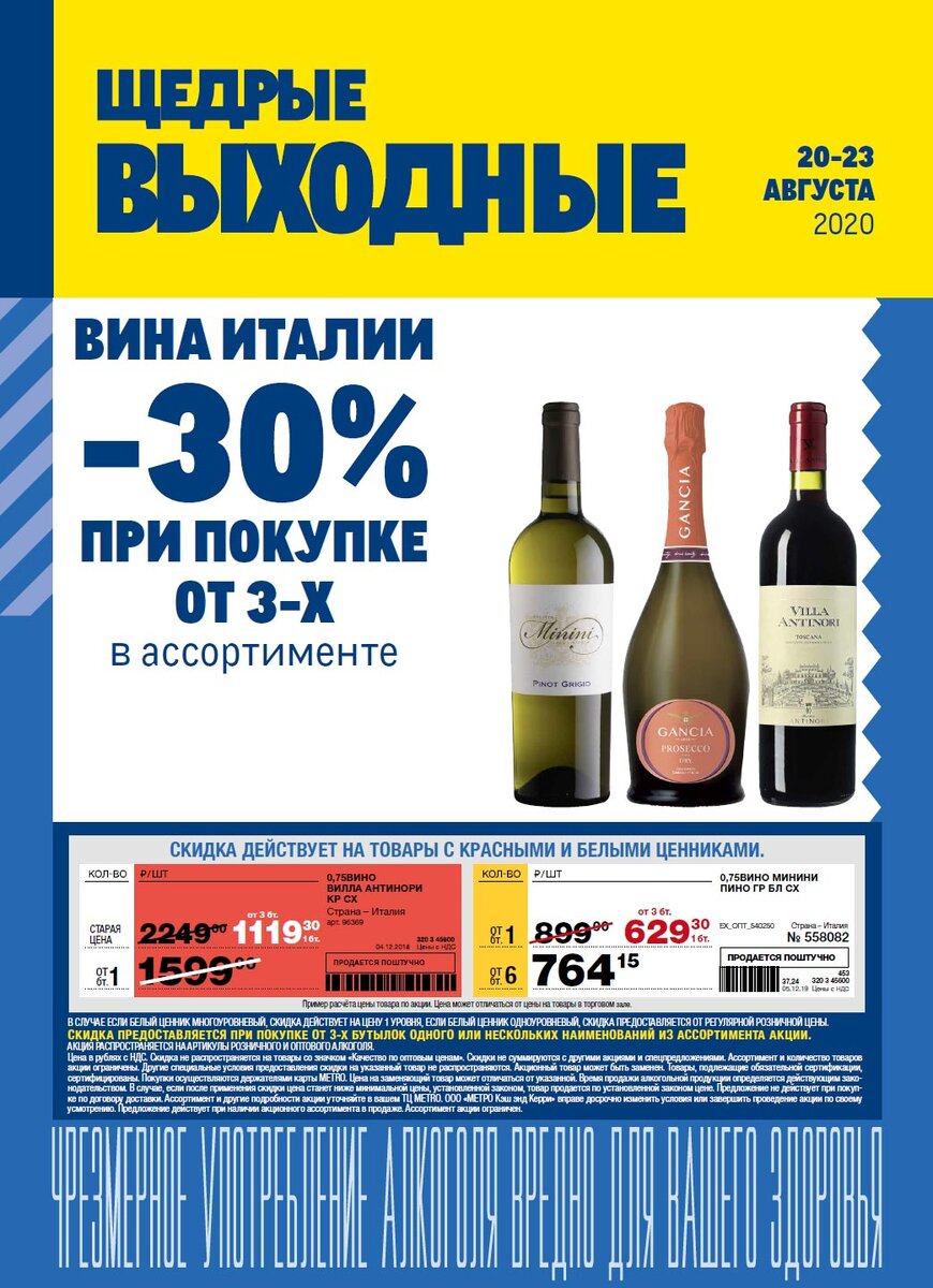 Скидка 30% на вина Италии в METRO Cash and Carry с 20 по 23 августа 2020 года
