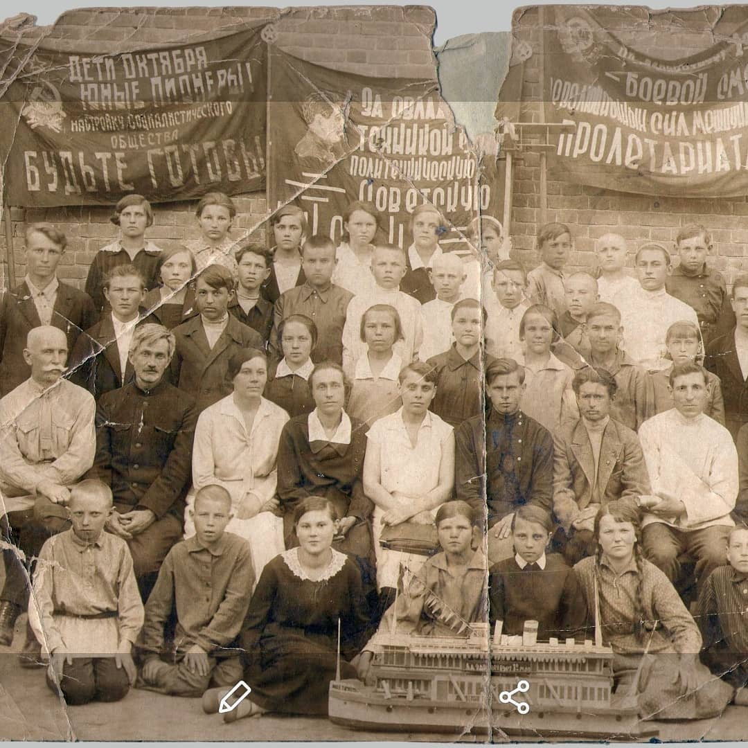 Как это было принято в СССР, речь вождя стала сигналом для начала широкой пропагандистской кампании. Официальные первомайские лозунги 1931 года включали призыв к молодежи, рабочим и руководящим кадрам овладевать техникой. Как писали в те дни советские газеты, «Лозунг тов.Сталина об овладении техникой всколыхнул всю пролетарскую общественность. На крупнейших заводах и стройках ударники принимают конкретные обязательства по овладению техническими знаниями» . По всей стране в тот год создавались технические кружки, клубы и тд. Можно предположить, что изображенные на фотографии школьники и комсомольцы (в заднем ряду) как раз и составляли один из многочисленных кружков юных техников — недаром на переднем плане горделиво выставлена на всеобщее обозрение сделанная школьниками модель парохода.