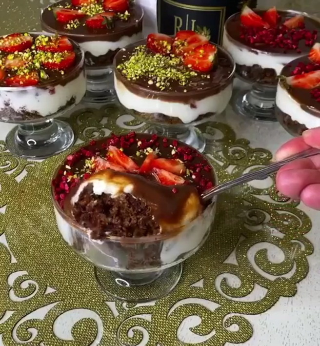 Необходимые продукты: Бисквит: приготовление бисквита: Перемешиваем яйца с сахаром, добавляем раст.масло, молоко. Затем все сухие ингредиенты просеиваем. В конце добавляем кипяток (горячий) и перемешиваем. Вливаем в форму и отправляем выпекаться при 180 С на 20-25 минут. Крем: Сливки взбиваем с пудрой несколько минут до устойчивых пиков. Для прослойки: Для глазури: Разогреваем немного сливки, добавляем шоколад и перемешиваем до растворения (даём немного остыть).