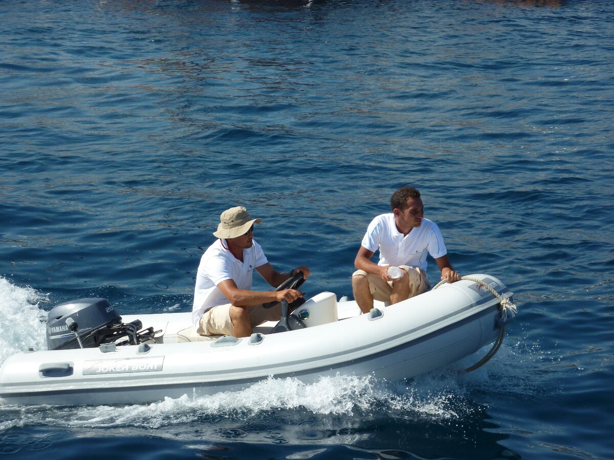 Диспетчер сидел на входе в марину в невысокой башне, стилизованной под старинный форт. Связались с ним по УКВ-радиостанции. Получили «добро» на заход. И через пару минут нас уже встречал служащий марины, которых тут называют «ассистенсами», на фирменном «тузике» (маленькая резиновая лодка с подвесным мотором). Широко улыбаясь, жестами он пригласил нас следовать за ним. Развернувшись, задним ходом мы зашли в марину. Справа и слева к нам подошли еще двое ассистенсов на таких же тузиках, и дальше мы пошли уже в сопровождении такого необычного эскорта. С первого взгляда было понятно, что «Палмарина» - сооружение ультрасовременное. Тем не менее, там было довольно тесно. Поэтому меня сменили за рулем, от греха. Наш турецкий «гид» показал нам на свободное место – узкий просвет между круизёром и двухмоторным катером. Расстояние от этих соседей до следующего ряда яхт, пришвартованных к соседнему параллельному понтону, было не больше 20-25 метров. Места для маневра поворота практически не бы