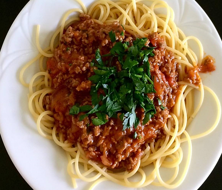 Ооочень простой и ооочень вкусный рецепт пасты Болоньезе Продукты: - Фарш любой (Говядина, говядина+свинина, курица, индейка.. абсолютно любой) - 400 г - Спагетти - Растительное масло (ДЛЯ ЖАРКИ) - Лук репчатый - Кетчуп или томатная паста - Соль, перец Приготовление: 1. Сварить спагетти в немного соленой воде, буквально две-три щепотки (можно в воде, а можно растворить бульонный кубик, на твой вкус). Слить воду, если спагетти дешевые, то нужно их прополоскать в холодной воде. 2. В сковородке (если у тебя всего одна кастрюля вообще, то можешь переложить спагетти в тарелку, а кастрюлю использовать вместо сковородки) поджарить лук (5 минут, перемешивая), добавить фарш и жарить еще 13-15 минут. 3. Добавить кетчуп или пасту томатную, поперчить (если хочешь) перемешать 4. Жарить еще 1-2 минуты. 5. Положить на тарелку спагетти, а сверху положить то, что получилось из фарша Вкуснейшее блюдо готово! Атеншан! если у вас есть морковка, то можете еще вместе с луком пожарить м