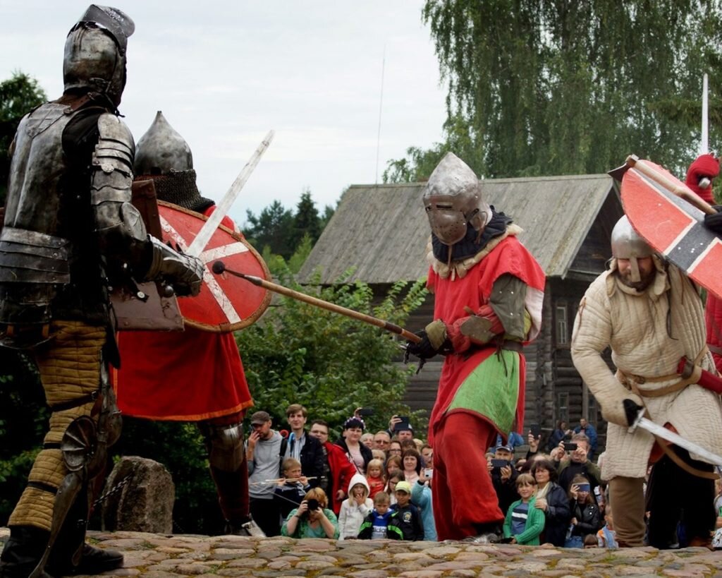 Воевали богатыри, рыцари, викинги и даже самурай из бежецкого клуба «Городецко» по-настоящему. Звон стали стоял на весь музей. Дрались и один на один, как на дуэли, и «стенка на стенку». Такие общие схватки, кстати, называются бугуртом. В общем, было шумно и страшно интересно как самим руконструкторам, так и зрителям.