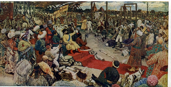 Восстание яицких казаков, переросло в крестьянскую войну. Популярности Пугачева способствовала идея объявить себя Петром III, якобы спасшимся от преследований своей жены Екатерины. А его призывы «казнить смертию» всех господ, а все их имущество «брать себе в награждение» способствовали вовлечению низов общества и жестокости событий.