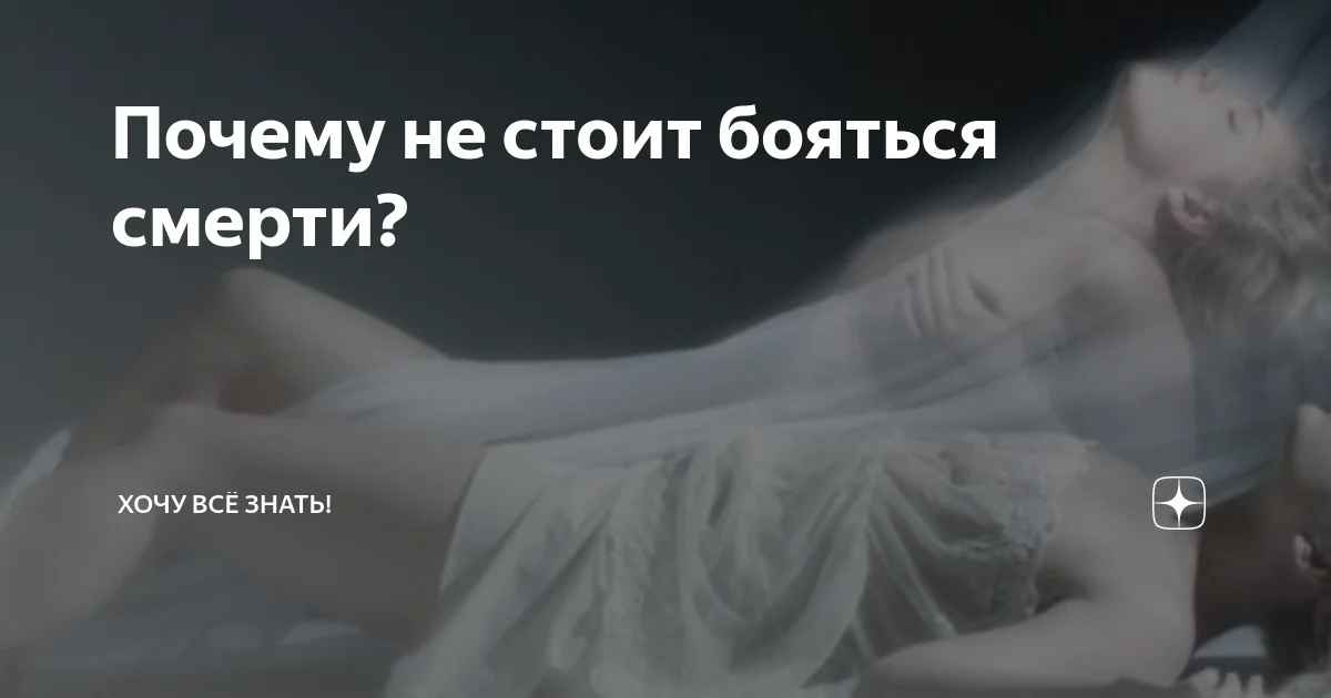 Слово смерть — на всех языках мира способно вызывать у многих людей сильнейшее, внутреннее волнение. Настолько сильное, что мы, как правило, отгораживаемся всеми возможными способами от обсуждения и обдумывания этой тайны из тайн жизни. Но цель этой статьи не проведения сравнительного анализа религиозных верований. Гипертрофированный страх смерти часто, наоборот, становится причиной самой смерти, во всяком случае значительно понижает качество жизни «гомо-сапиенс» — человека разумного. Страх смерти имеет свойства перерастать в другие страхи, калеча собой жизнь. Например, страх заболеть, страх перелётов, страх воды, страх огня (фобии)… Есть мнение, что в основе большинства страхов лежит страх смерти. И если избавится от страха смерти то и других страхов будет гораздо меньше. При этом вы не становитесь, по мнению невежд, бесчувственным зомби, не начинаете бездумно и без причины рисковать жизнью (прыгать на амбразуру и играть в русскую рулетку), скорее, наоборот, человек становится бо
