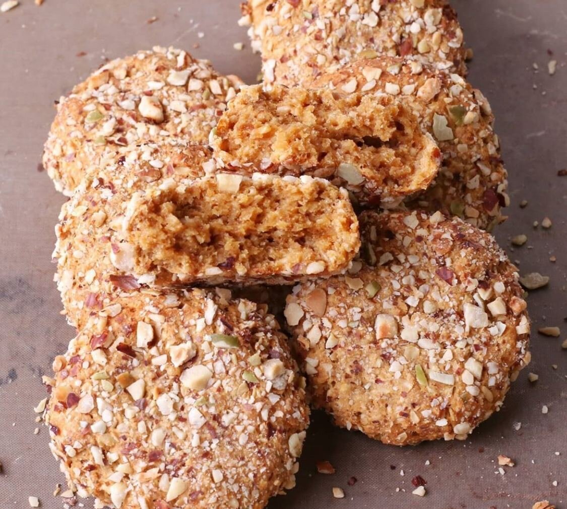 Овсяное печенье в ореховой обсыпке🍪 ⠀ ✅КБЖУ : 336/12/16/39 ⠀ Тесто: ▫️150 г овсяных хлопьев ▫️60 г цельнозерновой пшеничной муки ▫️40 г сливочного масла ▫️1 яйцо ▫️100 г кураги ▫️80 г творога (у меня 5% брикет) ▫️1/2 ч.л разрыхлителя ⠀ Посыпка: ▫️30 г фундука ▫️10 г тыквенных семечек *можно любые орехи или семечки ⠀ ▫️Овсяные хлопья измельчить в крошку. У меня хлопья, которые 15 минут варить. ▫️Фундук и тыквенные семечки измельчить также в крошку. ▫️В чашу блендера поместить курагу и яйцо и взбить. В полученную массу добавить творог и еще раз взбить. ▫️В миске растопить сливочное масло. Добавить смесь из кураги, овсяные хлопья, муку и разрыхлитель. Тесто липковатое получается. ▫️Из теста сформировать шарики и обвалять их в ореховой обсыпке. Перед выпечкой приплюснуть и в духовку на 180°С на 15 минут. ПП рецепты🍏 |
