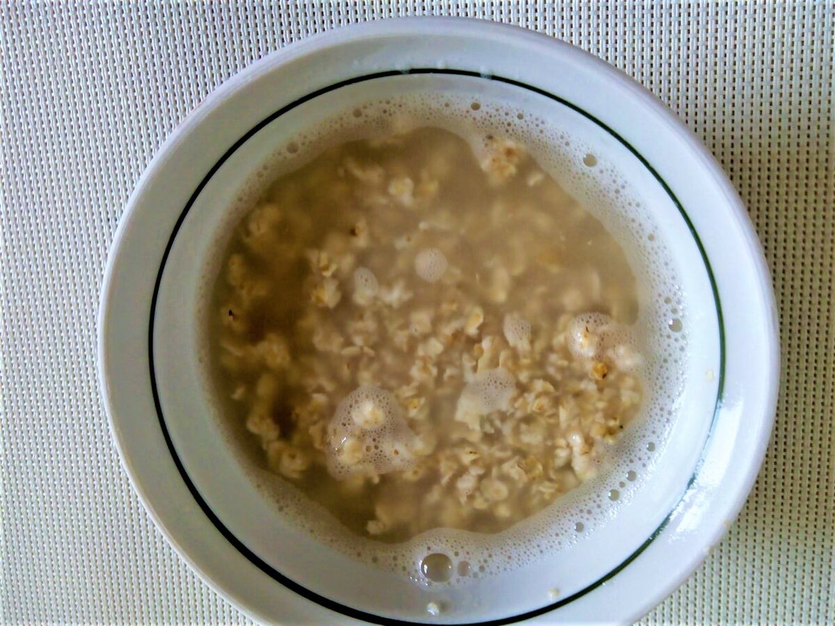 Две или три столовые ложки овсяных хлопьев заливают кипятком,