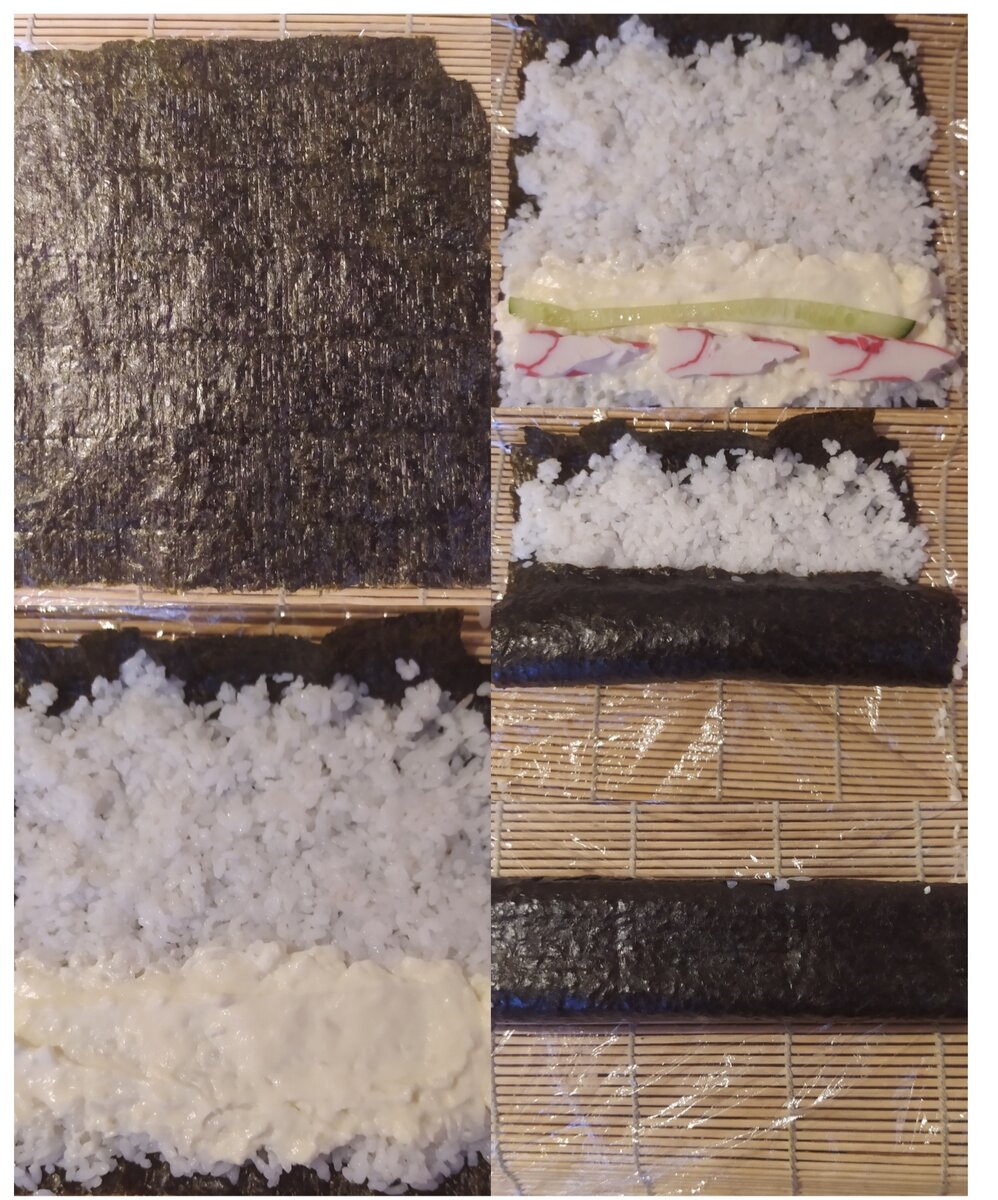Я люблю покушать суши. И как то приготовила сама, и всем так понравились. Давно не делала и решила приготовить. Начинки могут быть разные, кто что любит, но я люблю сочетание рис рыба. Ингредиенты Рис 1 ст Соль 1 ч.л Сахар 1 ст.л Уксус 1ст.л 9 % Листы нори Рыба мало сольная Огурец свежий Крабовые палочки Сыр плавленый Приготовление 1 Правильное приготовление риса. Рис я беру обычный (круглый). Промыть рис так, чтобы вода стала прозрачной. Водой залить так чтобы покрывало рис. Если варить на плите, то в кастрюлю с рисом и водой поставить на сильный огонь, как закипит, то переключить на маленький и проверить в итоге 20 минут. Выключить и оставить еще на 10 мин. Я варила в мультиварке. Включить функцию крупа на 20 минут. Оставить после с открытой крышкой. Сделать заливку в рис. На 1 ст.л горячей воды добавить уксус, соль и сахар, хорошо перемешать и вылить в рис перемешать. Подождать как остынет рис 2 Приготовить начинку. Нарезать огурцы, рыбу и крабовые палочки брусочками. 3 На ковр