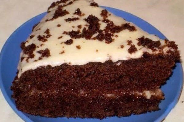 сахар 1/2 стакана Приготовление: 1 Взбить в густую пену сахар с яйцами, влить кефир с содой, взбить все вместе, всыпать постепенно муку, вымесить тесто похожее на густую хорошую сметану. Вылить тесто в смазанную форму, выпекать при температуре 180 градусов, готовность проверять зубочисткой. Остудить готовый корж, разрезать на 2 части. Для крема растереть сахар с мягким маслом, смешать со сметаной и взбить, смазать коржи, верх торта «Черный принц» оформить шоколадом с орехами. Приятного аппетита!
