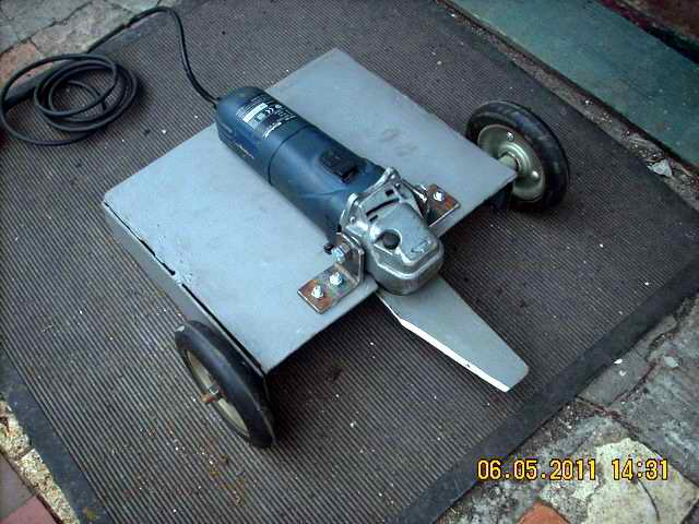 Из болгарки получается слишком громкая косилка - 11 тыс. оборотов делают ножи - вой страшный, поэтому болгарку я отложил и решил сделать из дрели, так как в инете люди из дрелей делали косилки. У дрели ножи делают максимум 3 тыс. оборотов, поэтому звук очень даже тихий и мощность получается больше, чем у косилки из наждака у болгарки и у дрели двигатель мощностью 850 ватт (у наждака 1320 оборотов делает двигатель и 370 ватт мощность движка). Из болгарки конечно получается компактнее, и я думаю что можно попробовать использовать болгарку с регулируемым количеством оборотов двигателя - тогда можно сделать её в 2 раза медленнее и будет не так выть.