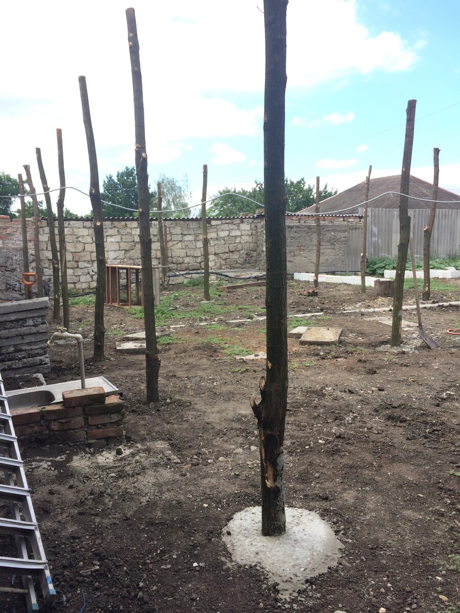 Первый этап нашей будущей теплицы! Высота теплицы 3 метра , ширина 7.6, длина 12 метов, вся площадь 90 кВ м. Столбы сделали из акации длиной 4 метра - 19 шт обошлись в 5 тысяч, куб стропильной доски 50мм на 100 мм 10 тысяч. Затеняющая сетка обошлась почти в 6 тысяч, но немного разочаровали, рулон 50 метров ширина 6 метров, по факту с натяжкой оказалось максимум 5,2 метра(( Следующим этапом планируем натянуть плёнку и сделать отопление. Пока она больше напоминает просто навес из деревянного каркаса, но скоро будет похожа на полноценную теплицу!