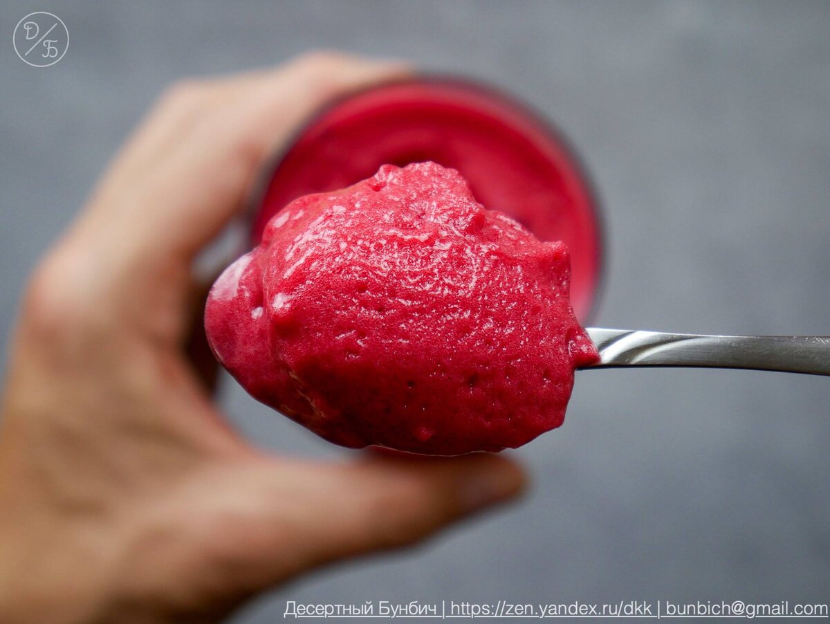 Сначала готовлю малиновое пюре. Для этого я протираю малину через машинку для протирки ягод. Я использую пюре малины, но подойдут и другие ягоды или фрукты.
