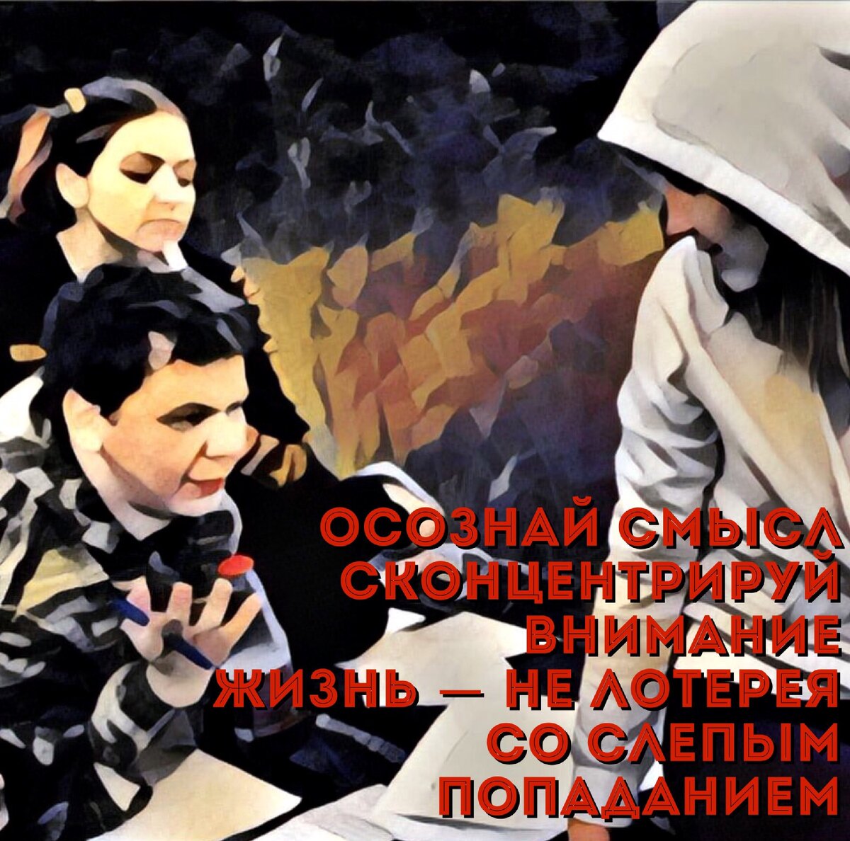 Людям показывались картинки, наложенные друг на друга. Нужно было сконцентрироваться из всего перечня изображений конкретно на лице. Как только человек преодолевал визуальный барьер в виде наслоения картинок, лицо (на котором нужно было заострить своё внимание) становилось более объемным и приобретало новые детали, которые не были видны на первый взгляд. Получается, что внимание работает как усилитель восприятия. Если концентрироваться на чем-то, то в нашем сознании всё приобретает более четкие очертания, мы углубляемся в подробности и усваиваем информацию гораздо лучше. Из этого следует, что мы становимся рассеянными из-за того, что не фокусируемся на чем-то определённом.