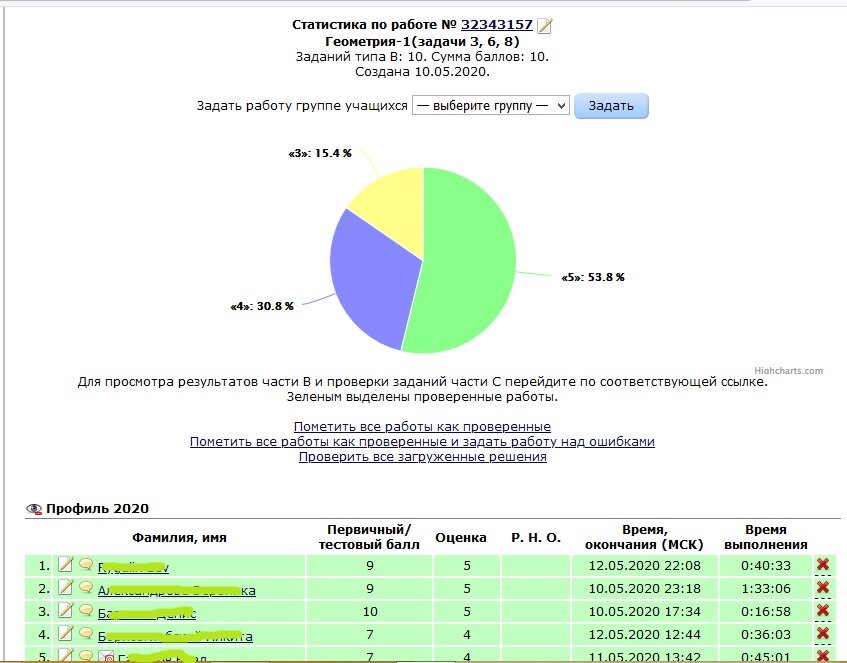 Сегодня я расскажу о том, как я быстро проверяю домашнее задание своих учеников вне зависимости от формата обучения: офлайн или онлайн. После каждого урока мои ученики получают специальным образом составленную работу на сайте Гущина. В случае, если идет подготовка к профильной математике, то это соответствующий раздел сайта. Задания я собираю не только как вариант ЕГЭ или его часть (например, к окончанию 10 класса я часто задаю первые 12 задач ЕГЭ), но и тематическими блоками, часто добавляя свои задачи. В заданиях с кратким ответом (это все задачи из первой части ЕГЭ) я сразу вижу статистику по каждому ученику и по группе в целом, т.е. понимаю, какое задание «запало», а, значит, требуется разбор на уроке. Решения заданий с развёрнутым ответом ученики прикрепляют там же, т.е. на сайте, решая задание в тетради, после чего на уроке мы уже разбираем ошибки. Как только я ставлю отметку о том, что работа проверена, а, возможно, и пишу комментарий ко всей работе или отдельно к какому-то з