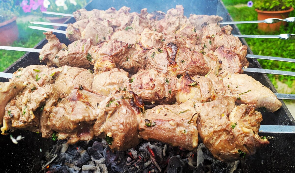 Тут тоже есть нюансы, первый раз нужно поджарить мясо до румяной корочки, только потом переворачивать. Когда мясо совсех сторон поджарилось, вертите шпажки, пока шашлык не приготовится, главное не пересушить.