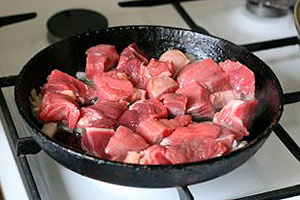 Всем добрый день) Сегодня я расскажу вам рецепт.очень вкусного гуляша из говядины. Ингридиенты: говядина-500гр. вода-500мл перец соль лук-1 шт. мука-1стол.ложка лавровый лист. том.соус-3 ложки Первое, что нам стоит сделать это обмыть говядину, обсушить ее и нарезать говядину средними кубиками и обжарить в растительном масле. Жарим говядину до того момента пока весь сок не испарится и говядина не станет румяной. Говядинку обжариваем на среднем огне. Вторым этапом нам надо порезать лук мелкими кубиками. После того как говядина обжарится до хрустящей корочки, мы к мясу.добавляем лук, и обжариваем до тех пор пока лук не станет золотистым. После этого добавляем три стол.ложки томатной пасты, перемешиваем все это и обжариваем. Томатную пасту обжариваем 2-3 мин. После этого добавляем в сковороду добавляем кипяченной воды, до такого уровня, чтобы мясо было полностью покрыто водой, перемешиваем и добавляем соль перец по вкусу. Также можно добавить зелень по вкусу. Закрываем крышкой, и тушим 40