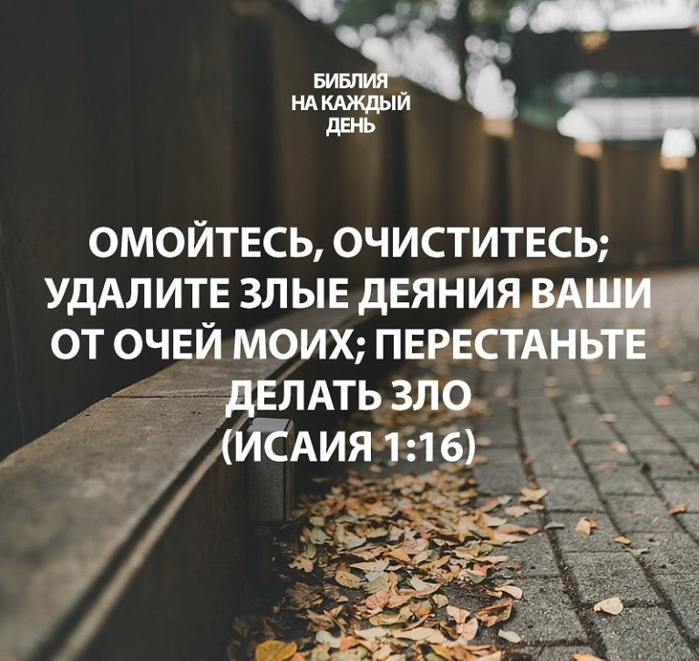 «Омойтесь, очиститесь; удалите злые деяния ваши от очей Моих; перестаньте делать зло; научитесь делать добро, ищите правды, спасайте угнетённого, защищайте сироту, вступайтесь за вдову» (1:16, 17).
