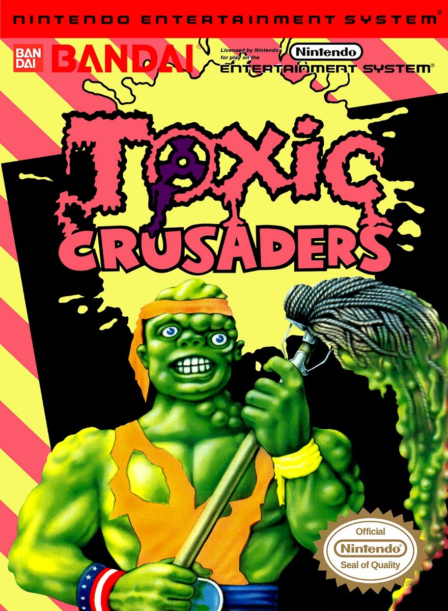 Версия для Денди На основе знаменитого трэш-фильма в котором снимался аж Стен-ли от студии Трома был выпущен мультсериал, по которому и сделана одноименная игра. Главный герой - токсичный мутант, спасающий город от преступников. По виду герой немного напоминает ниндзя-черепаху. Концепция игры также схожа с Ninja Turtles - перед нами битэмап с элементами скроллинга. Правда, черепахи куда более играбельны. Ведь Токсичный Мститель печально известен своей ужасной, зашкаливающей сложностью. Враги валят на вас толпами, буквально не давая передохнуть. В придачу еще и уровни полны препятствий. Все это, вкупе с неудобным управлением, позволяет называть Toxic Crusaders трэш-игрой. Версия для SEGA Она была выполнена в немного другом стиле. Если версия игры для Dendy была медленным, размеренным наклонным битэмапом, в лучших традициях жанра, исключая необходимость ювелирной точности прыжков через разлитые препятствия, то версия для SEGA игралась динамичнее. Токси здесь сразу гонял на скейте,