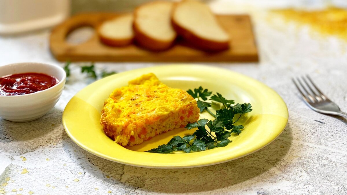 Начните день с полезного завтрака. Давно известно, что морковь лучше усваивается в приготовленном виде. А в сочетании с яйцами получается превосходное блюдо, которое нравится детям и взрослым. Попробуйте приготовить, вам точно понравится! Ингредиенты на 3 порции: Морковь - 1 шт. Яйца - 4 шт. Молоко - 100 г Вода - 100 г Масло растительное - 30 мл Специи - по желанию Соль - по вкусу КЖБУ на 100 г: Как готовить: 1. Подготовим морковь Морковь очищаем, моем водой и натираем на терке. 2. Тушим морковь Перекладываем морковь в сковороду, добавляем воду. Тушим на среднем огне без крышки до испарения жидкости. 3. Взбиваем яйца В миску вбиваем яйца, добавляем молоко, специи и соль. Вилкой или венчиком взбиваем до однородности. 4. Соединяем ингредиенты В тушёную морковь вливаем масло и яичную смесь и выравниваем вилкой. 5. Готовим Накрываем крышкой и готовим на небольшом огне около 10 минут. Вкусный и полезный завтрак Угощайтесь, мои дорогие! Не забудьте посмотреть мой видео-рецепт, в котором я п