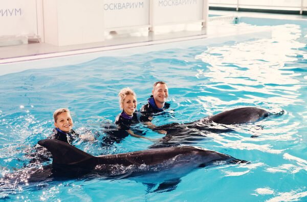 Всем привет! В самом центре Москвы на есть прекрасный центр плавания с дельфинами – Москвариум на ВДНХ. Это не только дельфинотерапия, но и прекрасное развлечение для детей и взрослых. Почему нужно посетить Москвариум и обязательно поплавать с дельфином? Об этом мы и поговорим в статье, поплыли! Москвариум и польза плавания с дельфинами Огромный современный океанариум позволяет в центре Москвы познакомиться с живыми обитателями морей и океанов. Более 12 тысяч водных жителей притягивают горожан и гостей столицы. Вы можете посмотреть водное шоу, кормление пираний и даже устроить семейное плавание в бассейне с дельфинами. Удивительное рядом! Дельфины – это удивительные создания. Воздействие этого замечательного существа на человека очень сложно переоценить. Дельфины дарят не только эмоциональное удовольствие, но и исцеляют человека. Заметив подобное воздействие на организм, человек начал применять дельфинотерапию. Дельфинотерапия имеет комплексное влияние, которое складывается прежде всег