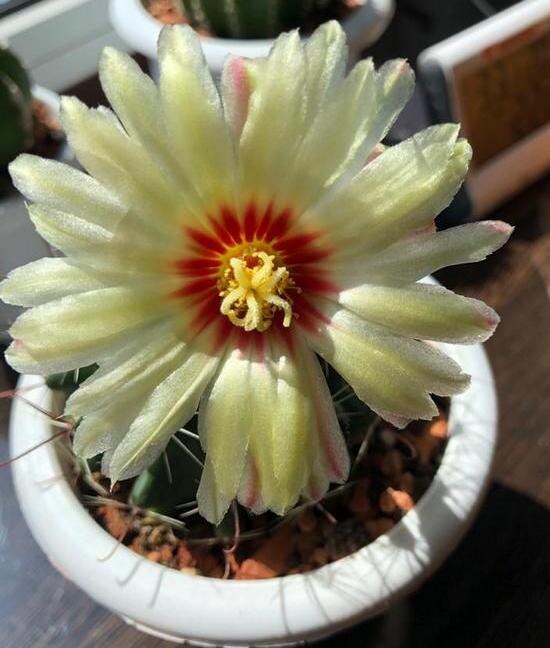 Купить Хаматокактус по низкой цене не проблема. На фото показано его цветение.