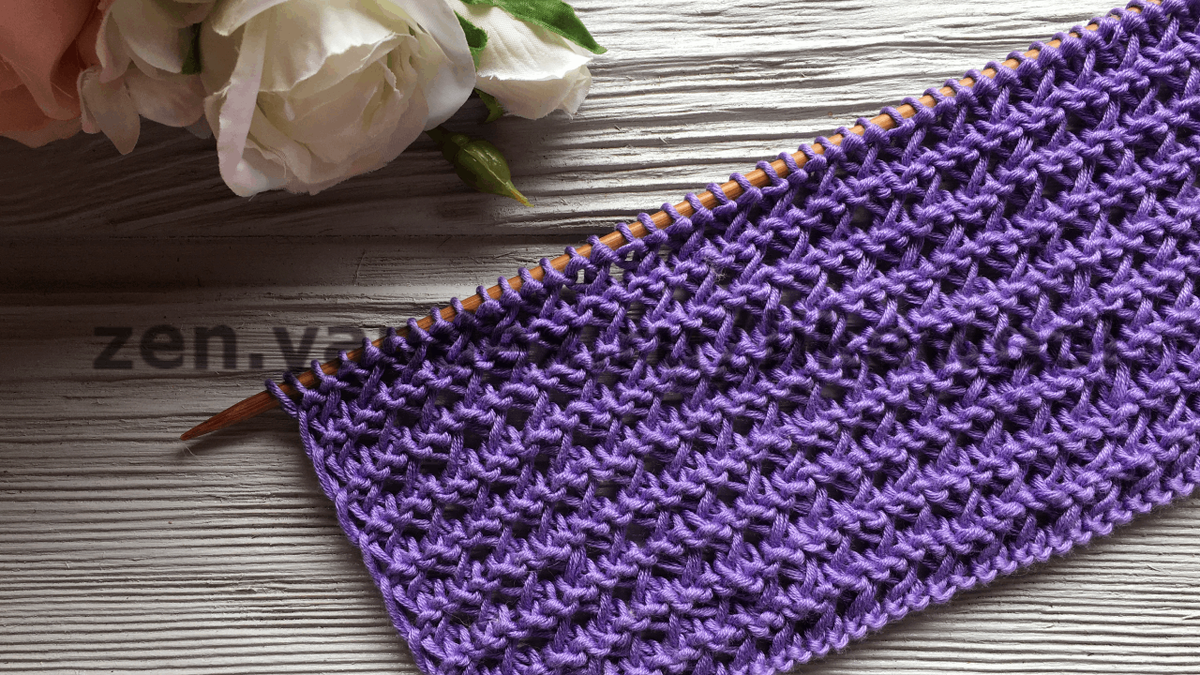 Для вязания образца на спицы необходимо набрать количество петель, кратное 2 и 2 кромочные.