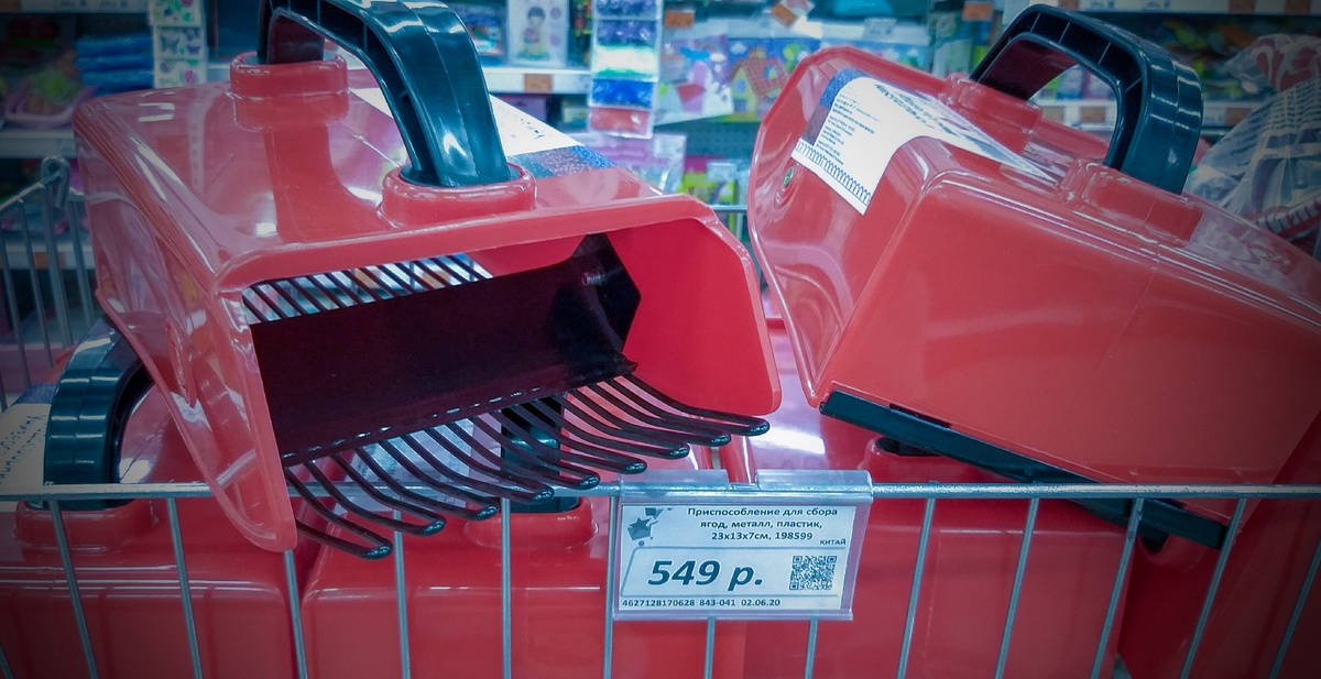 Время собирать ягоды: в продаже появилось необходимое приспособление- пластиковый комбайн. Дороговато, 549 р. На Озоне можно купить дешевле или по примерно такой же цене (листайте фото)