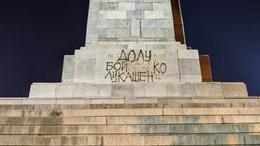 В ночь с понедельника на вторник на памятнике Советской армии в центре Софии появилась надпись „Долу Бой/Лукашен/ко“, сообщает „Дневник“... На памятнике Советской армии в Софии опять появились надписи