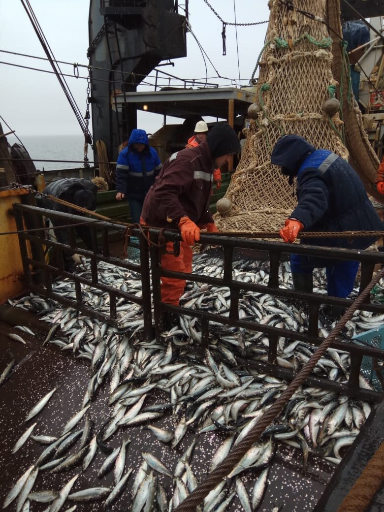 Как сообщил начальник первой части экспедиции Артем Шейбак, по данным траловой съемки с тихоокеанской стороны Южных Курил весной 2020 г. учтено примерно 2,4 млрд. экземпляров. Численность годовиков составила 0,6 млрд. экземпляров, что соответствует уровню среднеурожайного поколения. Отдельно выделялись трехгодовики 2017 года рождения и четырехгодовики поколения 2016 г., биомасса рыб промысловой длины увеличилась до 112 тыс. тонн, за счет вступления в нее особей многочисленных поколений. В целом в структуре минтая наблюдалась высокая доля пополнения, что в будущем положительно скажется на росте промысловой части этого запаса.
