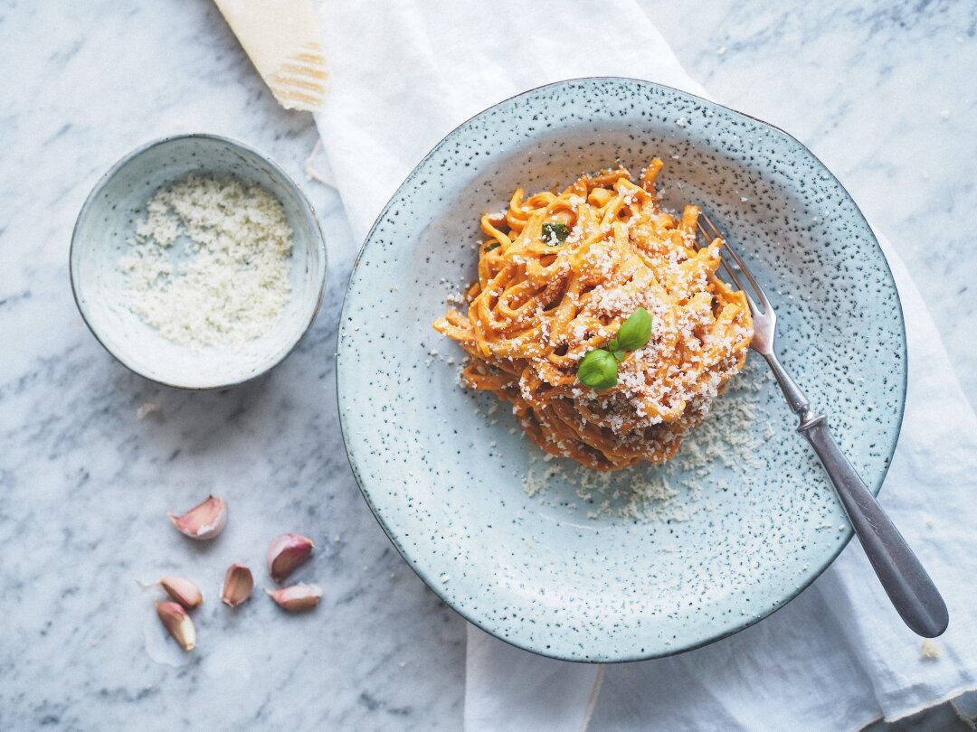 Я снова готовил суп из жареных помидоров и перца, и тут меня осенило. Это был бы отличный соус для пасты! Конечно, я немного скорректировал рецепт и подправил его, но основа на самом деле точно такая же, как и суп. Затем добавьте рикотту к жареным овощам в блендере вместо бульона, создавая божественный и нежный соус. По своей привычке я никогда не мог сделать небольшое количество, поэтому заранее предупреждаю, что этого количества хватило примерно на шесть порций. Если вы хотите меньше соуса, разделите ингредиенты или просто положите остальную часть соуса в морозилку на более поздние ленивые вечера. Что вам нужно: 45 минут, 6 порций соуса свежие макароны на ваш выбор (у меня был лингвини, но они подойдут даже пенне или фузилли) 600 г красного перца 400 г помидоров черри 3 больших зубчика чеснока 2 больших лука-шалота (около 130 г) 3 больших веточки свежего тимьяна 50 мл оливкового масла первого отжима 200 г рикотты 2 столовые ложки маринованных вяленых помидоров в масле большая гор