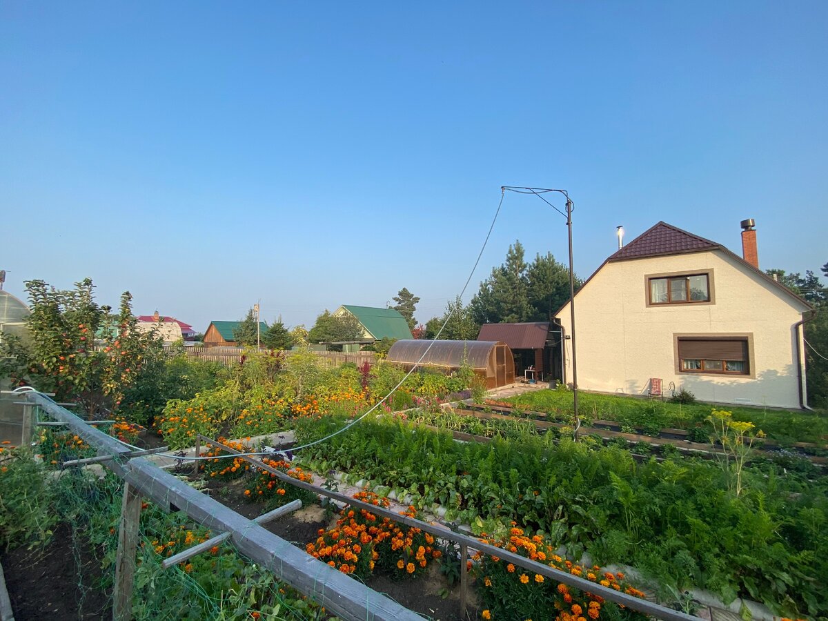 Дачники для полива своего огорода используют широко распространенные вращающиеся, качающиеся или разбрызгивающие системы полива. Зачастую эти системы заливают все сверху. Это не всегда удобно и полезно для растений. Очень часто используется поливка из шланга. Очевидно, что таскать шланг по участку очень хлопотливо, особенно если он толстый и резиновый. Много шлангов путаются под ногами, мешают и портят посадки. Поэтому на той площади, где у меня находятся все грядки, я определил центр и с помощью труб ПЭ диаметром 25 мм., подвел воду. Чтобы рассчитать длину шланга, который доставал до всех грядок, в помощь пришла теорема Пифагора. Расстояние от центра до дальней точки грядки и труба 4 м. Самое трудное было сделать вращающийся гусак на трубе, который следит за поворотом шланга. Не должно было быть наверху металлического крепежа, который мог бы заржаветь летом или зимой. Установил пластиковые втулки, что позволило не снимать шланг на з