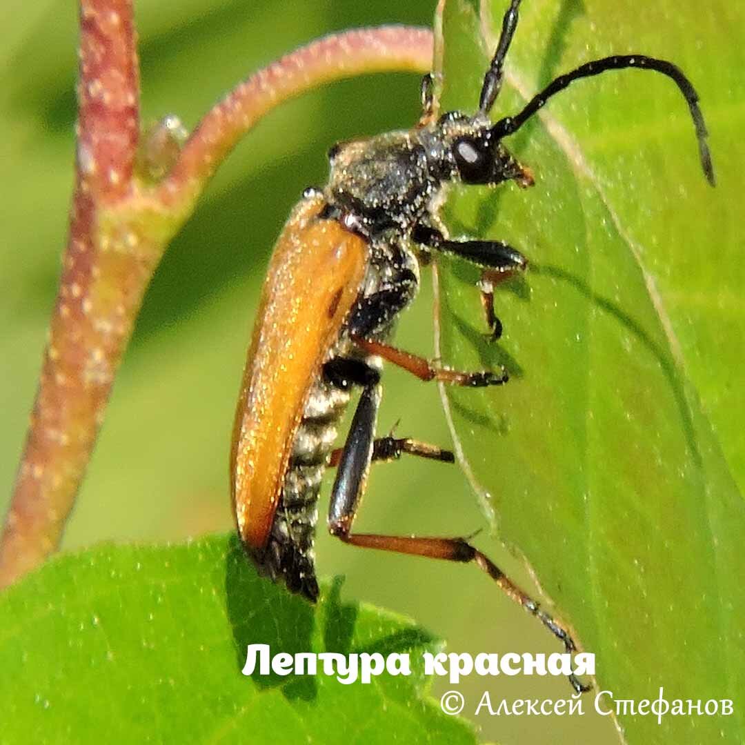 - Маленький жук лептура красная, окраска которого зависит от пола и варьируется от красновато-рыжей до коричневой, кормится пыльцой и нектаром. Он встречается в течение всего лета, обычно на цветках. Личинки развиваются в древесине сосны, а также некоторых других пород. Они разрушают уже отмершую древесину стволов и пней. Вреда не приносят.