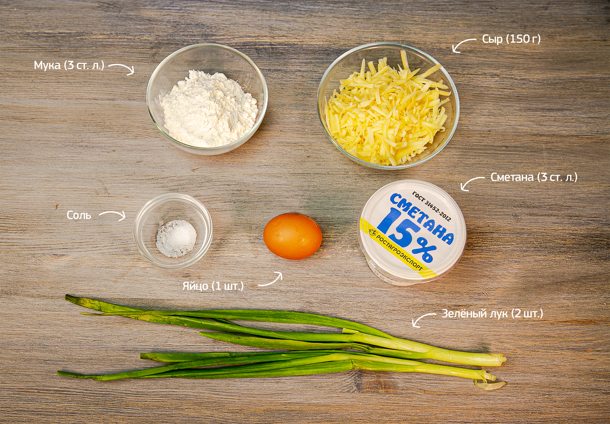 Смешиваем в емкости сыр, сметану, зеленый лук, яйцо, солим и перчим по вкусу.