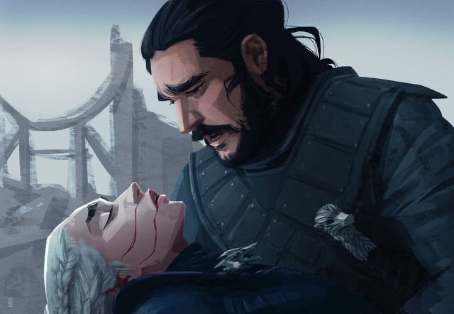 Джон, подзуживаемый Тирионом и страхом за сестёр, вонзает кинжальчик в сердце последней из Таргариенов.