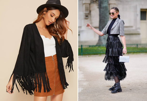 Одним из лидирующих элементов осенней одежды в этом сезоне является бахрома. Она органично дополняет верхнюю одежду, платья с длинным рукавом, костюмы. Считает, что чем длиннее бахрома, тем эффектнее образ. Оно может покрывать наряд сверху донизу ил просто быть его продолжение снизу. Этот тренд легко вписать в любой гардероб, ведь он подходит любому возрасту, росту, а также любому типу фигуры.