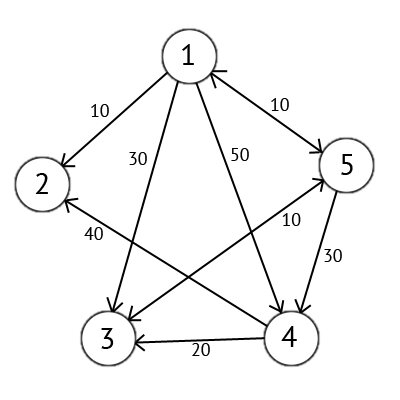 Возьмем в качестве источника вершину 1. Это значит что мы будем искать кратчайшие маршруты из вершины 1 в вершины 2, 3, 4 и 5.