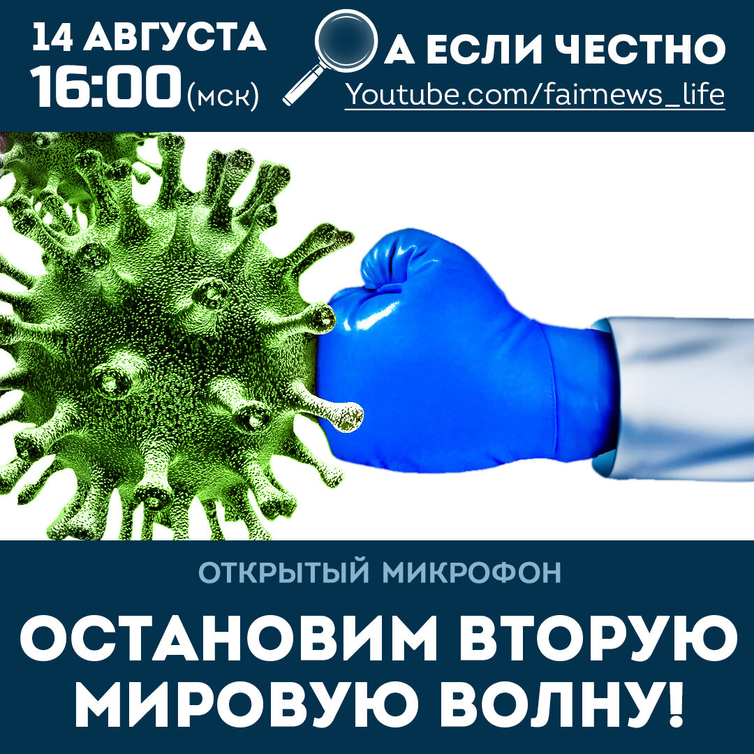 14 августа, 16.00 (мск) международный открытый микрофон «Остановим вторую мировую волну!». Прямой эфир состоится на канале «А если честно,»