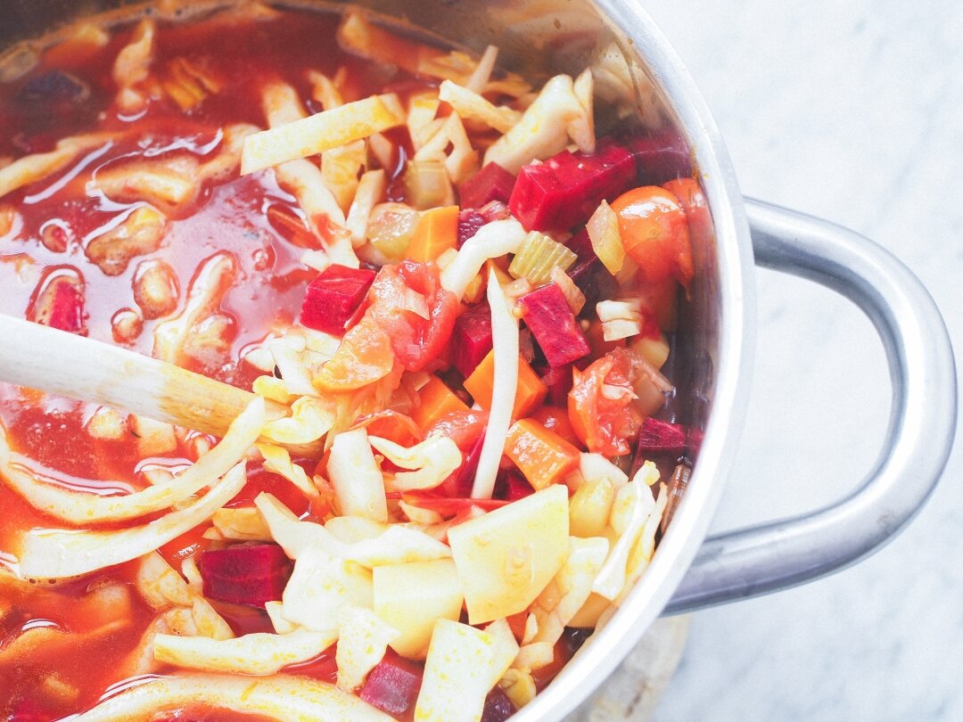 Чтобы борщ стал одним из моих любимых супов, я ем его и готовлю очень мало. Я понятия не имею, почему это так, но когда я вижу его в меню где-то, я должен попробовать его сразу же. Это изначально украинский национальный суп, но вы можете встретить его много в России, Польше или Болгарии. Традиционно готовят с говядиной, но так как у меня в последнее время вошло в привычку, я решил сделать вегетарианский вариант. Возможно, нигде в кулинарных книгах или в Интернете я не видел такой же версии этого супа, и вот рецепт. Я просто заранее говорю, что мне нравится много овощей и отличительных ароматов. Например, я кладу корицу целиком и кардамон. Если вам не нравится ни то, ни другое в вашей еде, или у вас нет кардамона дома, просто пропустите его. Для меня это прекрасно, но было бы обидно, если бы кардамон, например, обескуражил вас. Я его очень хорошо знаю, я его не знаю или у меня его нет дома, я действительно не хочу его готовить:D Да, и не беспокойся о списке ингредиентов. На самом деле