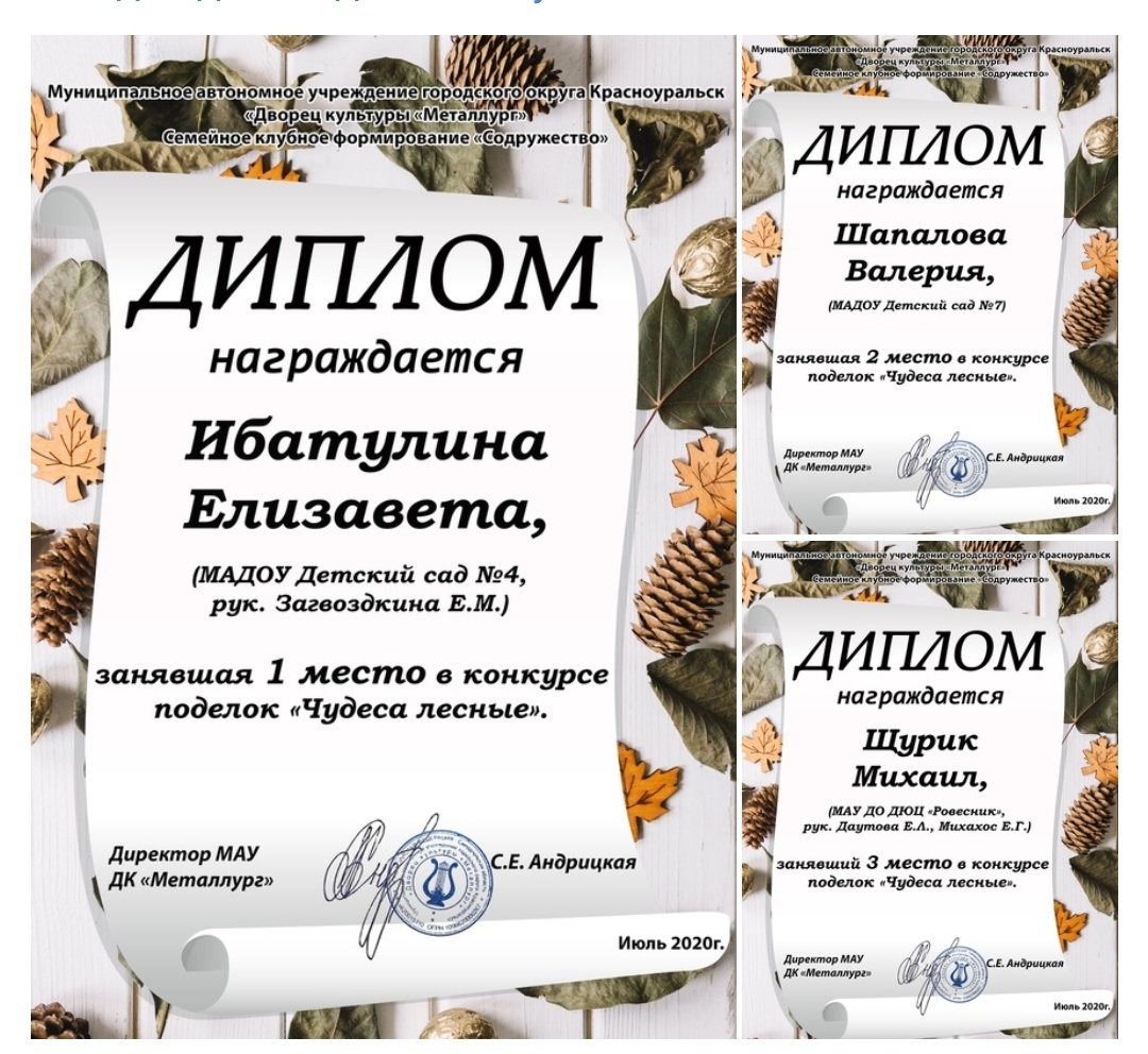 Рады сообщить, победителей конкурсов "Чудеса лесные" и "Нет коронавирусу!" на вахте ДК "Металлург" ждут призы!