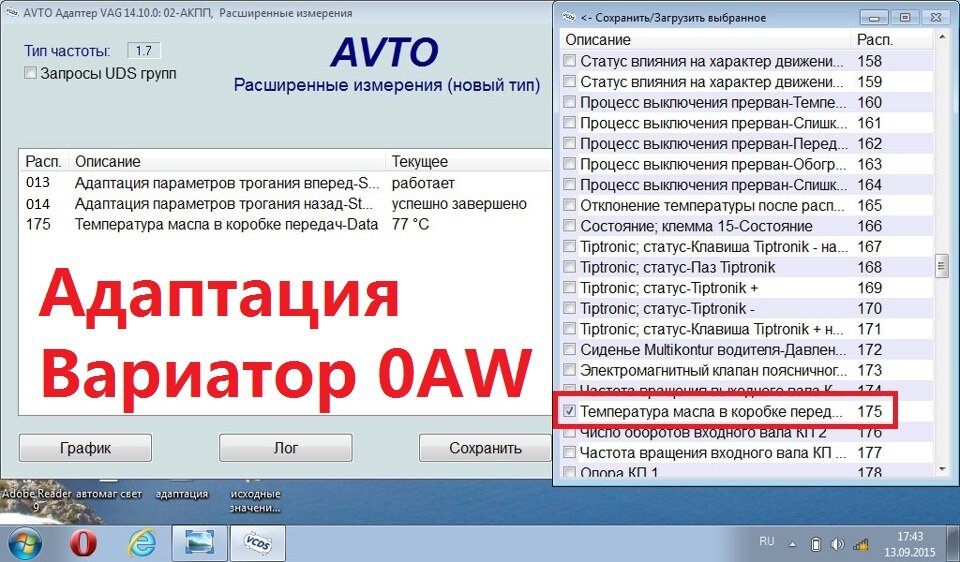 - 04-Базовые установки > Resetting of all adaptation values > Finished correctly ( Сбрасываем все настройки вариатора )
